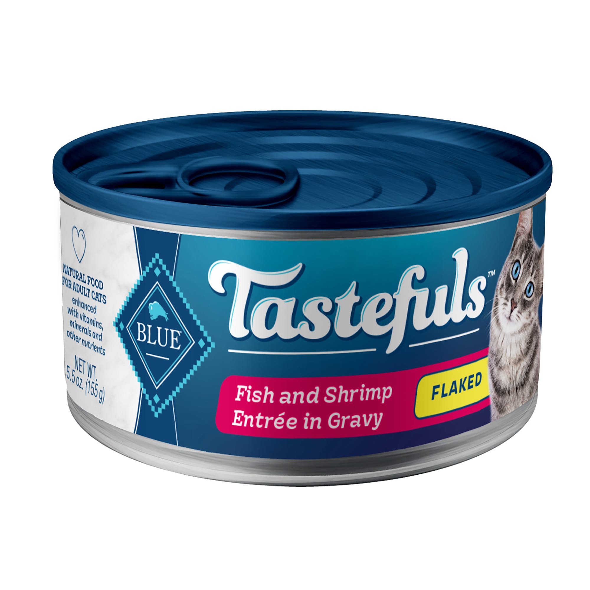 The first ingredient in this BLUE Tastefuls cat food variety pack is protein-rich chicken fish or tuna to support healthy muscle. European pet food industry federation fediaf. Up to 4 cash back Blue Buffalo Tastefuls Fish Shrimp Entrée in Gravy Flaked Wet Cat Food 3-oz can case of 24.